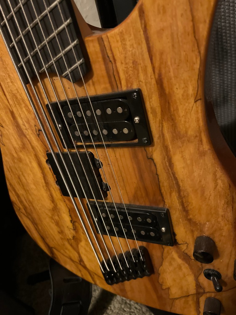 I haven’t made the mods yet, but I’m taking the cheap copycat Ibanez individual bridges out and replacing them with hip shot bridges. The bridge pick up is actually fire AF, so I’m keeping it. The neck pick up on the guitar side I’m ditching for a Deathbucker and the bass pickups I’m ditching for a Nordstrand Big BladeMan 4. I’m gutting the electrical too… Replacing all the pots, installing a series parallel switch for the death bucker, and installing dual kill switches for both the bass and the guitar output.